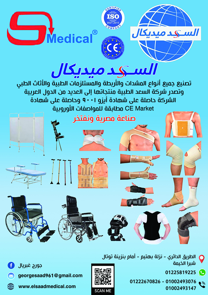 تصنيع جميع انواع المشدات والأربطة والمستلزمات الطبية والاثاث الطبي – تصنيع احزمة طبية وكراسي متحركة بجميع انواعها - التصدير إلى العديد من الدول العربية - الشركة حاصلة على شهادة أيزو 9001 وشهادة CE Market مطلبقة للمواصفات الأوروبية - جميع منتجاتنا صناعة مصرية
