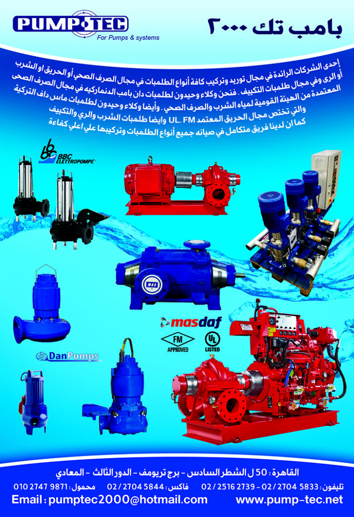 توريد وتركيب كافة أنواع الطلمبات سواء في مجال الصرف الصحي أو الحريق او الشرب او الرى وأيضا في مجال طلمبات التكييف - وكلاء وحيدون لطلمبات دان بامب الدنماركيه في مجال الصرف الصحى المعتمدة من الهيئة القومية لمياه الشرب والصرف الصحي - وكلاء وحيدون لطلمبات ماس داف التركية والتي تختص مجال الحريق المعتمدUL. FM وايضا طلمبات الشرب والري والتكييف - لدينا فريق متكامل في صيانه جميع أنواع الطلمبات وتركيبها علي اعلي كفاءة