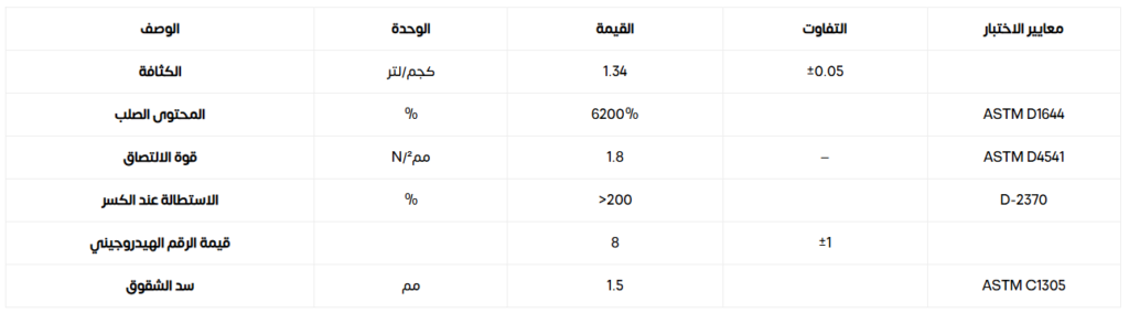 الخصائص أحادي المكون ولا يحتاج إلى خلط سهل التطبيق ويمكن استخدامه بواسطة عمالة غير ماهرة مرونة عالية التصاق جيد بالأسطح المعدنية المطلية الجديدة أو القديمة سريع الجفاف مقاومة جيدة للأشعة فوق البنفسجية والماء والرطوبة