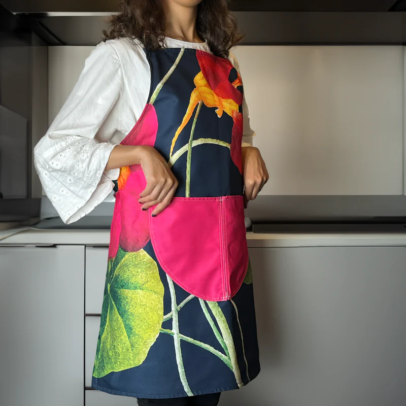 يضمن القماش الخفيف والمسامي بقاءكم منتعشين ومرتاحين حتى خلال ساعات طويلة من ارتدائه. يتميز المئزر بجيب أمامي واسع، يوفر مساحة كافية لأدوات مطبخكم أو أعمالكم الفنية.