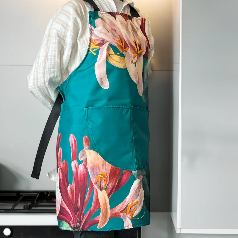 يضمن القماش الخفيف والمسامي بقاءكم منتعشين ومرتاحين حتى خلال ساعات طويلة من ارتدائه. يتميز المئزر بجيب أمامي واسع، يوفر مساحة كافية لأدوات مطبخكم أو أعمالكم الفنية.