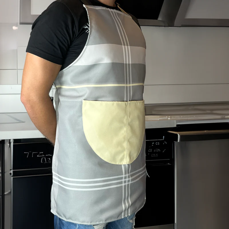 يضمن القماش الخفيف والمسامي بقاءكم منتعشين ومرتاحين حتى خلال ساعات طويلة من ارتدائه. يتميز المئزر بجيب أمامي واسع، يوفر مساحة كافية لأدوات مطبخكم أو أعمالكم الفنية.