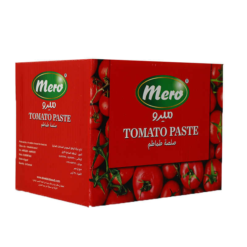 تقدم الوفاق السعودي للصناعات الغذائيةمعجون طماطم ميرو في أكياس صغيرة سعة 35 جم، مخصصة في علبة تحتوي على 24 كيسًا، لضمان الطزاجة والتحكم في الكمية بسهولة. مصنوع من طماطم طبيعية ناضجة تحت أشعة الشمس، ويتميز بلونه الأحمر الغني وقوامه الكثيف ومذاقه الأصيل. مثالي للاستخدام في المنازل والمطاعم والتموين، حيث يجمع بين الجودة العالية وسهولة التخزين والاستخدام.