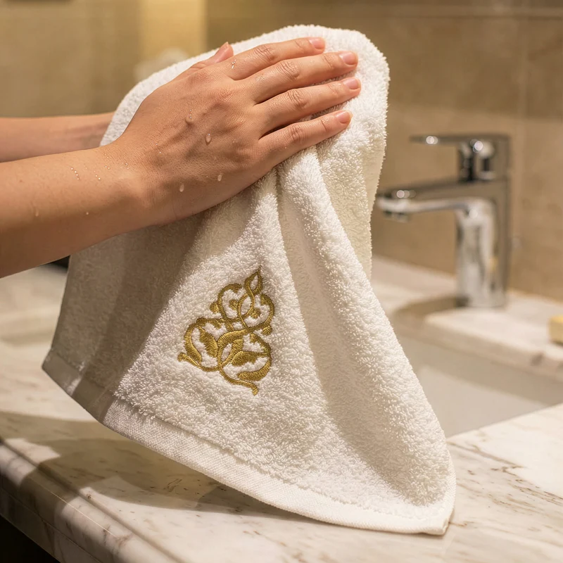 مناشف قطنية للضيوف – مطرزة – بيضاء 600 غرام/متر مربع – طقم من قطعتين